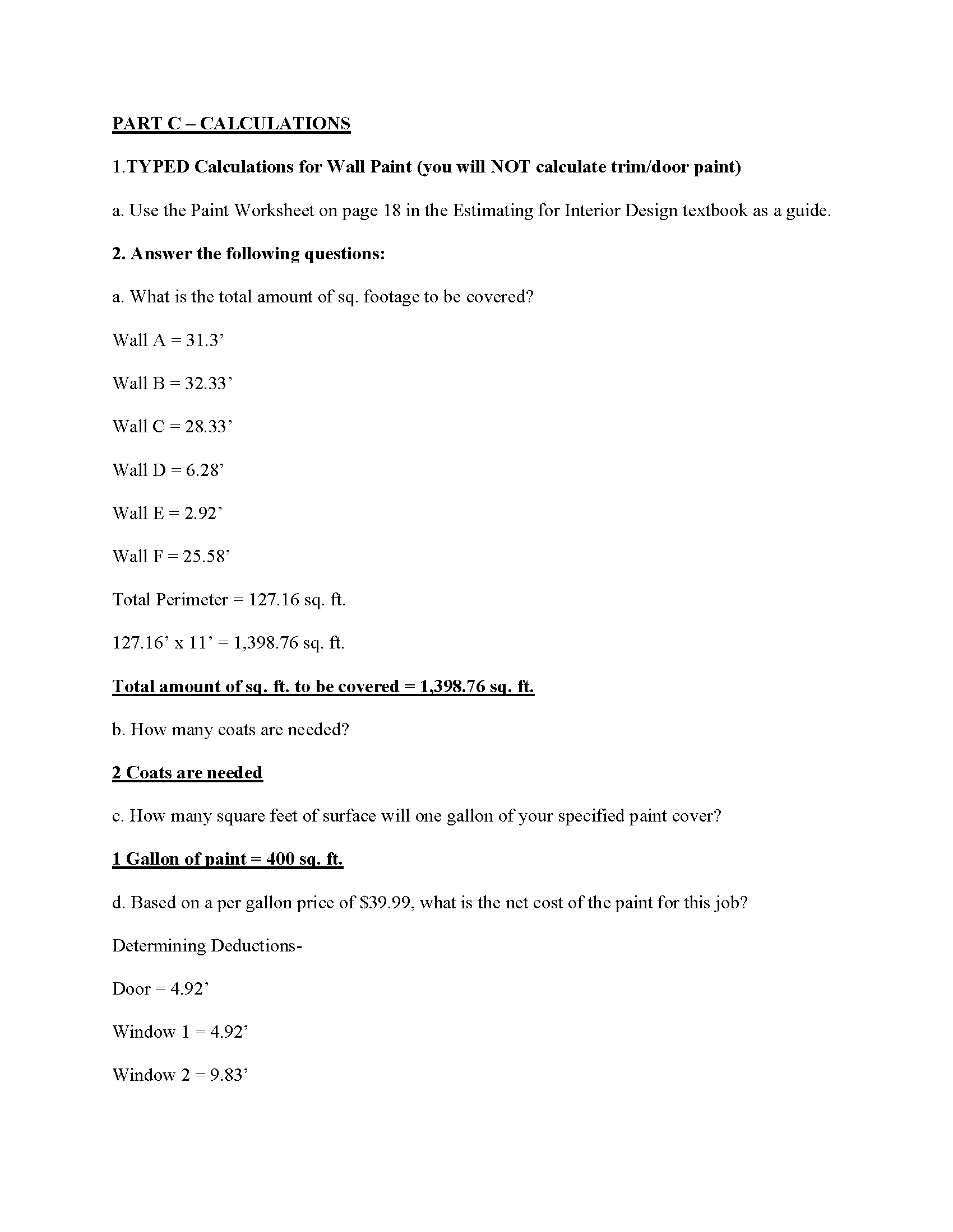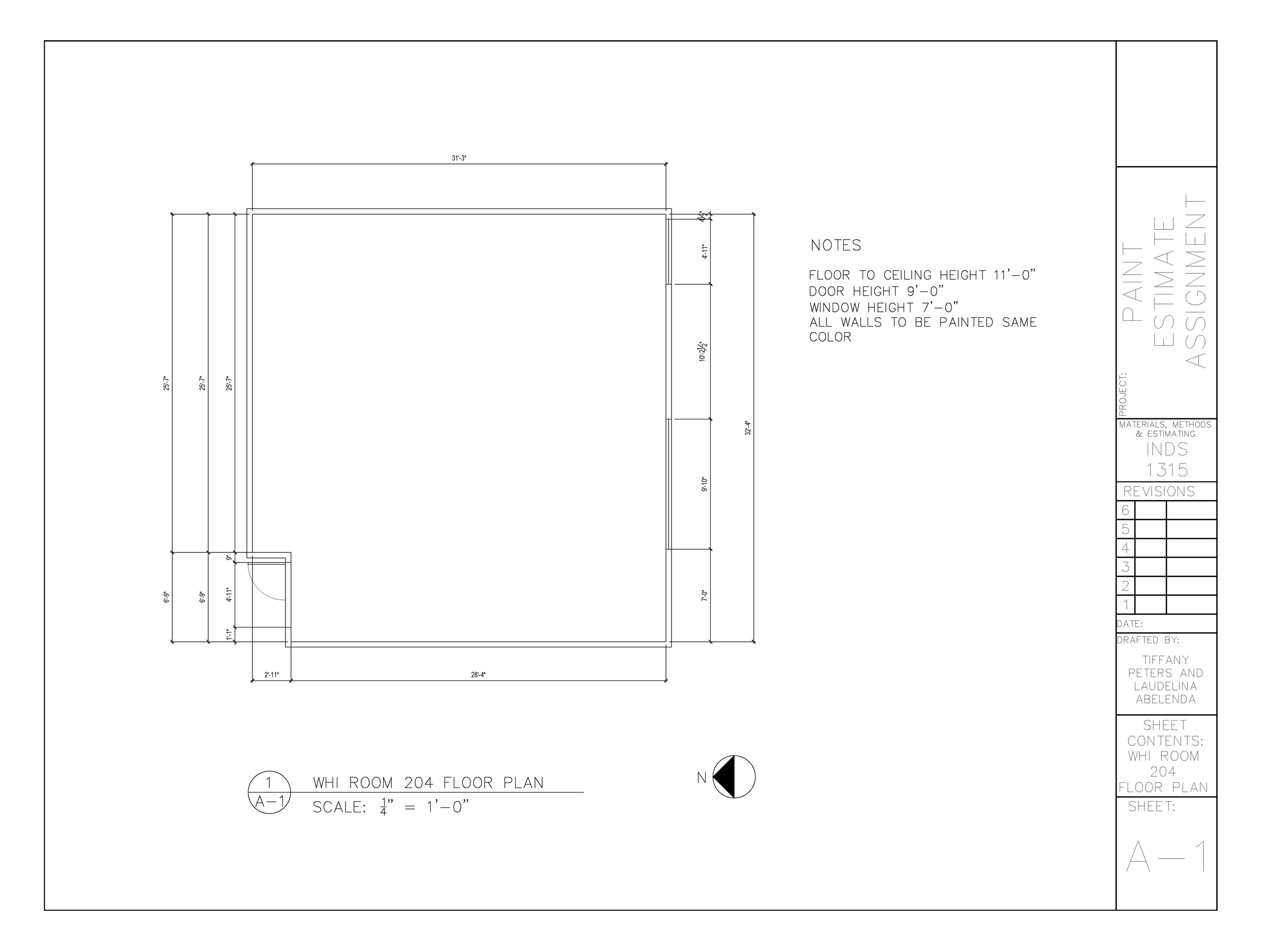 Based on the WHI Room Floor Plan, I needed to calculate the amount of paint that was necessary to cover the entire room. In addition, I was able to calculate the cost of the paint and how much as a designer I would earn from completing this job.